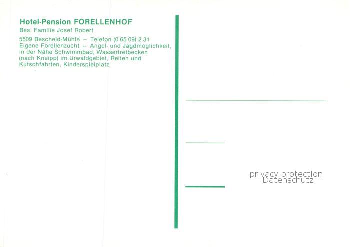 73785243 Bescheid Hermeskeil Hotel Pension Forellenhof Wildpark Anglersee Terrasse postalisch nicht gelaufen Erhaltung siehe scans [WerneD78] KatCode: 11110007235005