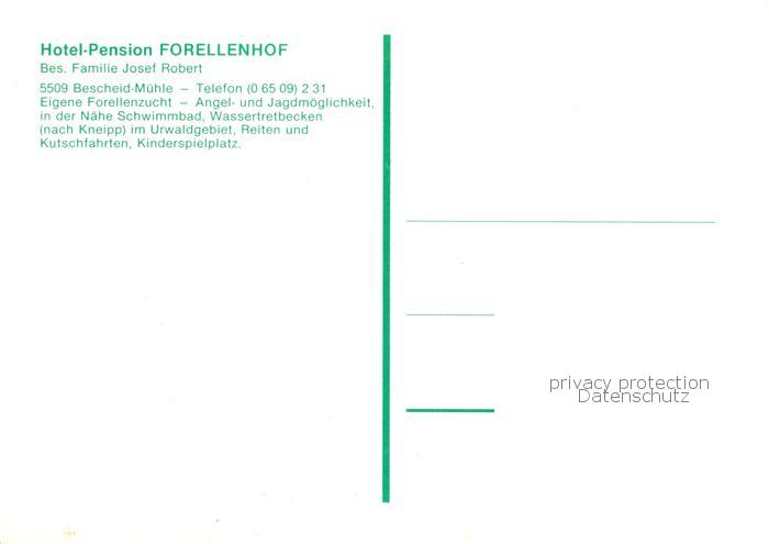 73791275 Bescheid Hermeskeil Hotel Pension Forellenhof postalisch nicht gelaufen Erhaltung siehe scans [WerneD78] KatCode: 11110007235005