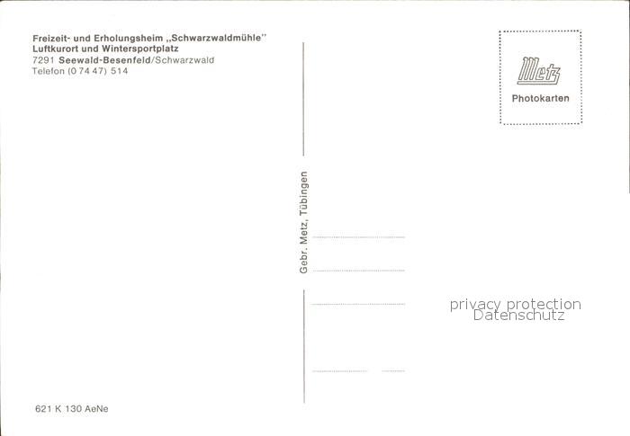 72203647 Besenfeld Erholungsheim Schwarzwaldmuehle Seewald postalisch nicht gelaufen Erhaltung siehe scans KatCode: 11110008237073