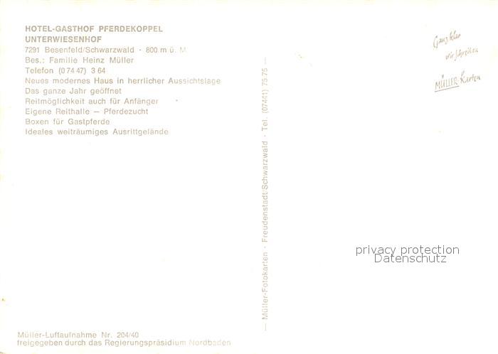 73685409 Besenfeld Hotel Gasthof Pferdekoppel Unterwiesenhof Fliegeraufnahme postalisch nicht gelaufen Erhaltung siehe scans [WerneD78] KatCode: 11110008237073