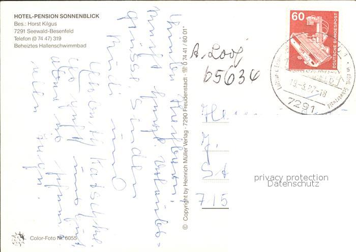 72215348 alte Postkarte Besenfeld Hotel Pension Sonnenblick postalisch gelaufen Erhaltung siehe scans KatCode: 11110008237073