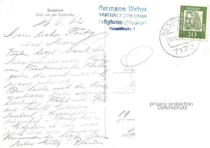 74053049 alte Postkarte Besigheim Blick von der Emsbruecke postalisch gelaufen Erhaltung siehe scans [WerneD78] KatCode: 11110008118007