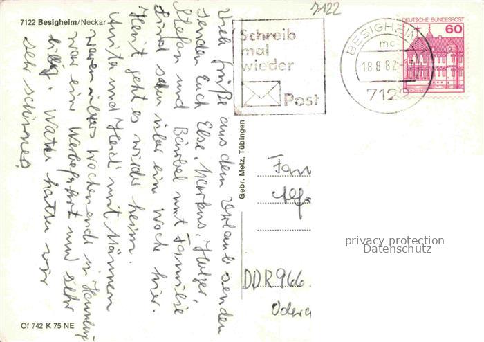 74054861 alte Postkarte Besigheim Brunnen Rathaus Apotheke Altstadt Fachwerkhaeuser postalisch gelaufen Erhaltung siehe scans [FriedD77] KatCode: 11110008118007