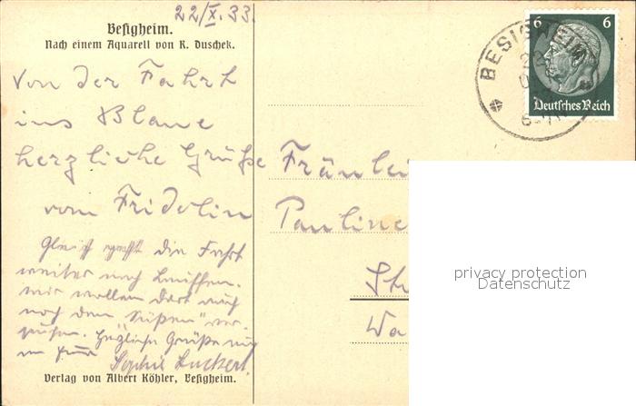 Besigheim Kuenstlerkarte Aquarell R. Duschek