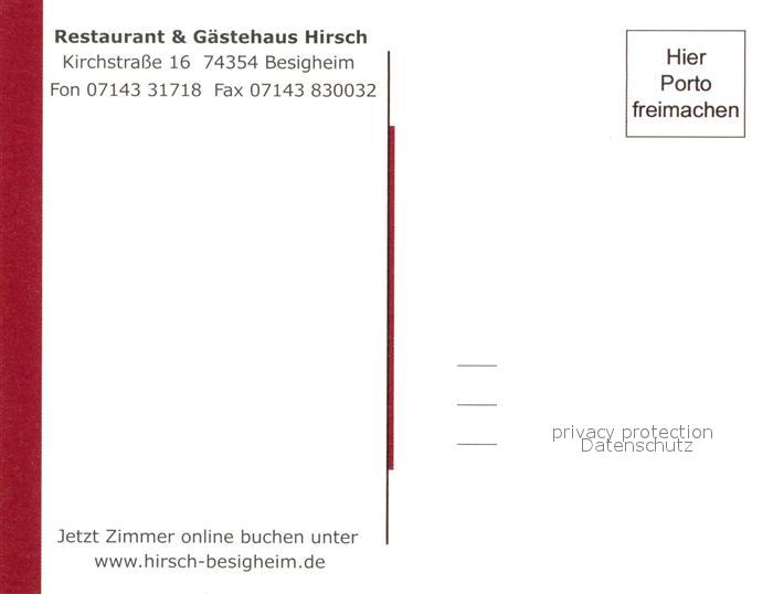73266137 Besigheim Restaurant Gaestehaus Hirsch Fachwerkhaus postalisch nicht gelaufen Erhaltung siehe scans [FriedD77] KatCode: 11110008118007