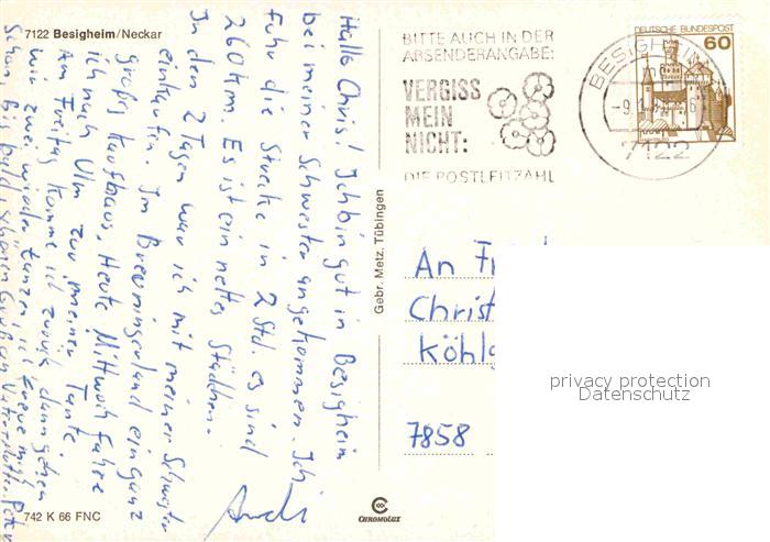 72857385 alte Postkarte Besigheim Teilansicht Wehr postalisch gelaufen Erhaltung siehe scans [WerneD78] KatCode: 11110008118007