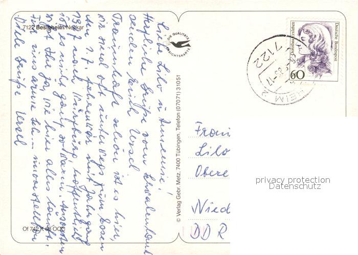 73112033 alte Postkarte Besigheim postalisch gelaufen Erhaltung siehe scans [NatalD47] KatCode: 11110008118007