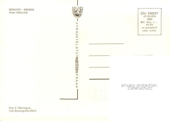 13223038 Beskydy Krasna Hotel Visalaje postalisch nicht gelaufen Erhaltung siehe scans [LiesaD40] KatCode: 11520