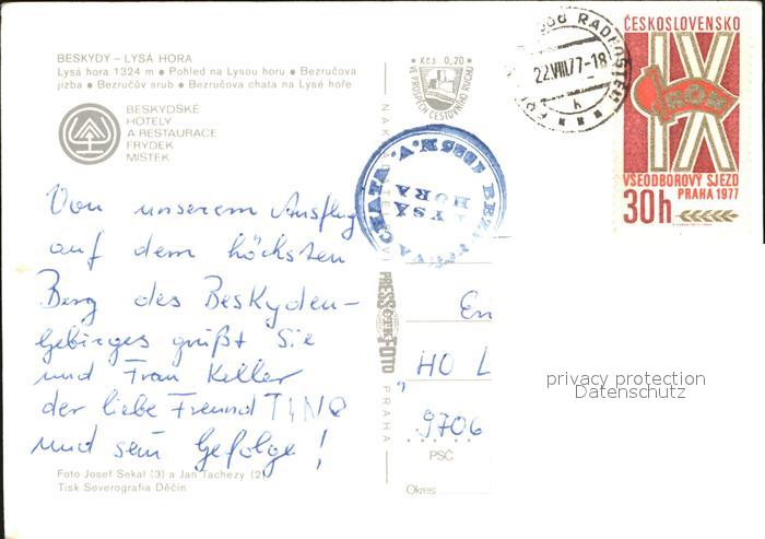 old postcard Beskydy Lysa Hora postalisch gelaufen Erhaltung siehe scans