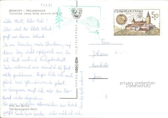 old postcard Beskydy Trojanovice Turistica chata Velky Javornik postalisch gelaufen Erhaltung siehe scans