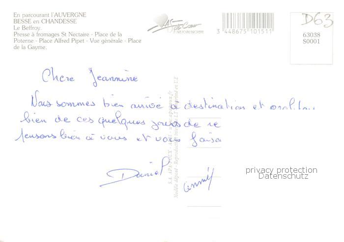 13790540 Besse Charente Le Beffroy Presse fromages St Nectaire Place de la Poterne Place Alfred Pipet Vue generale place de la Gayme postalisch nicht gelaufen Erhaltung siehe scans [WerneD78] Wern Katcode 11170016316042