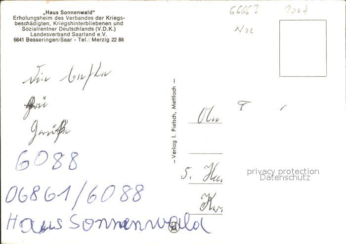 72238461 Besseringen Haus Sonnenwald postalisch nicht gelaufen Erhaltung siehe scans KatCode: 11110010042113