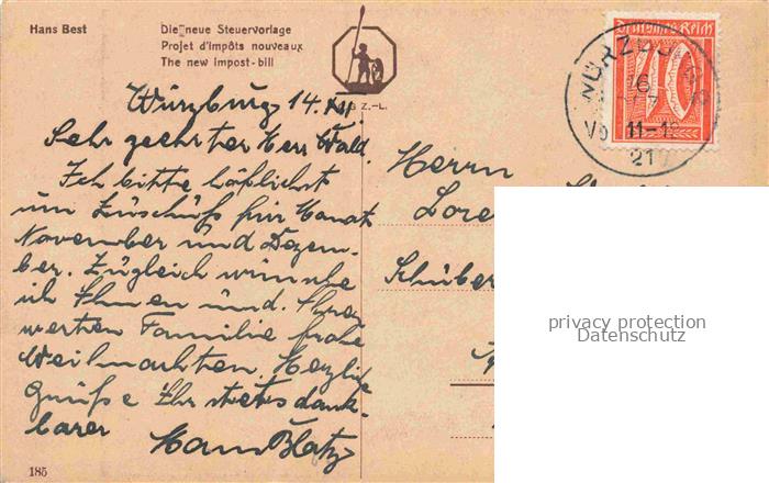 74091529 alte Postkarte BEST Hans Kuenstlerkarte die neue Steuervorlage postalisch gelaufen Erhaltung siehe scans [SanaeD93] KatCode: 22240000003210