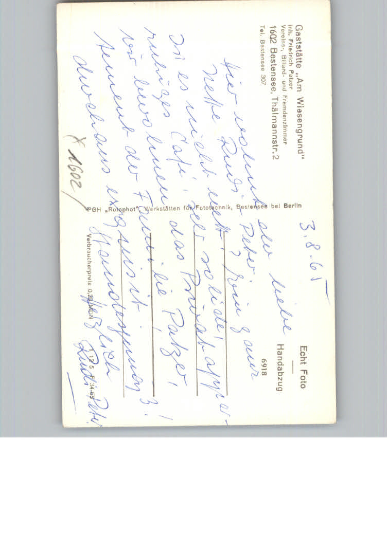 31178580 Bestensee Gaststaette Am Wiesengrund postalisch nicht gelaufen KatCode: 11110012061020
