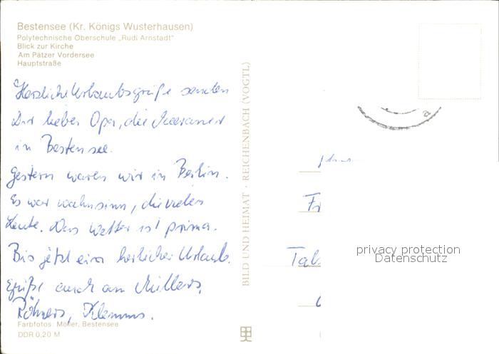 72369993 alte Postkarte Bestensee Polytechnische Hochshule Kirche Am Paetzer Vordersee postalisch gelaufen Erhaltung siehe scans KatCode: 11110012061020