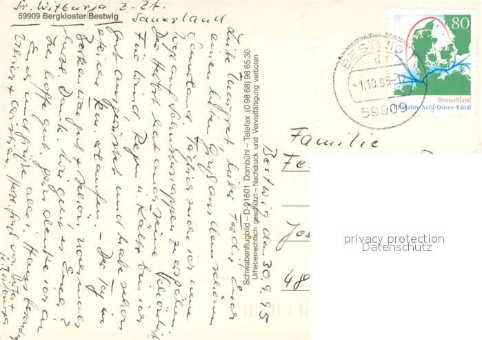 73685411 alte Postkarte Bestwig Bergkloster Fliegeraufnahme postalisch gelaufen Erhaltung siehe scans [WerneD78] KatCode: 11110005958008