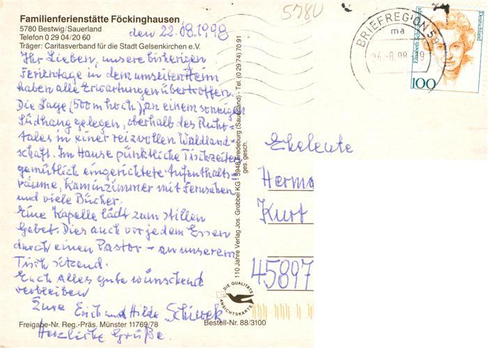 73943447 alte Postkarte Bestwig Familienferienstaette Foeckinghausen Fliegeraufnahme postalisch gelaufen Erhaltung siehe scans [WerneD78] KatCode: 11110005958008