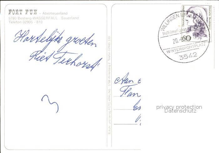 72420165 alte Postkarte Bestwig Fort Fun Abenteuerland Cowboys Eisenbahn Pferdekutsche Achterbahn postalisch gelaufen Erhaltung siehe scans KatCode: 11110005958008