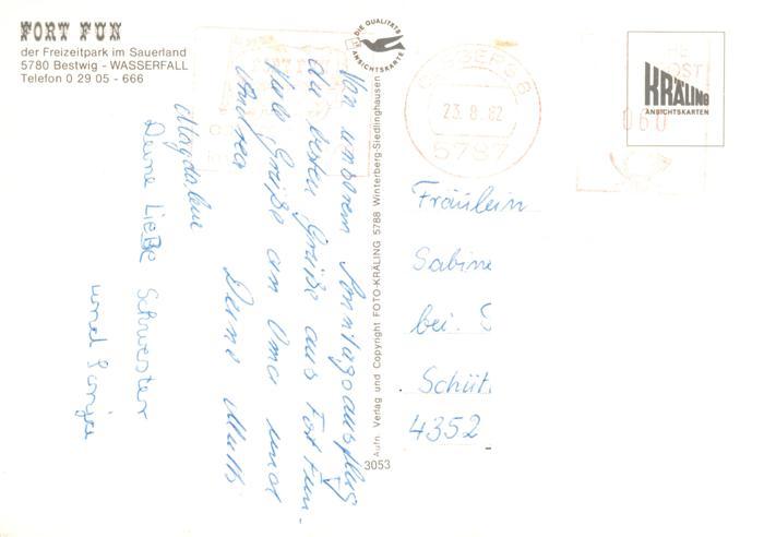 73942521 alte Postkarte Bestwig Fort Fun Rodelbahn Sessellift Planwagen Lokomotive Zeltdorf Saloon postalisch gelaufen Erhaltung siehe scans [WerneD78] KatCode: 11110005958008