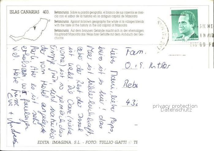 old postcard Betancuria Maxorata postalisch gelaufen Erhaltung siehe scans [NatalD47 kv014box]