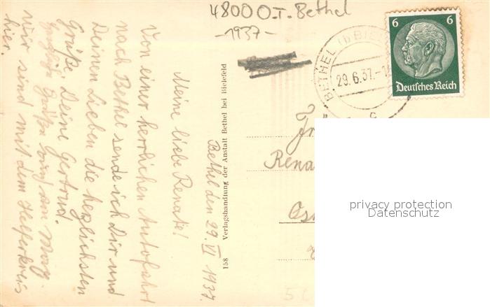 73704733 alte Postkarte Bethel Bielefeld Auf dem Feld postalisch gelaufen Erhaltung siehe scans [LiesaD40] KatCode: 11110005711000