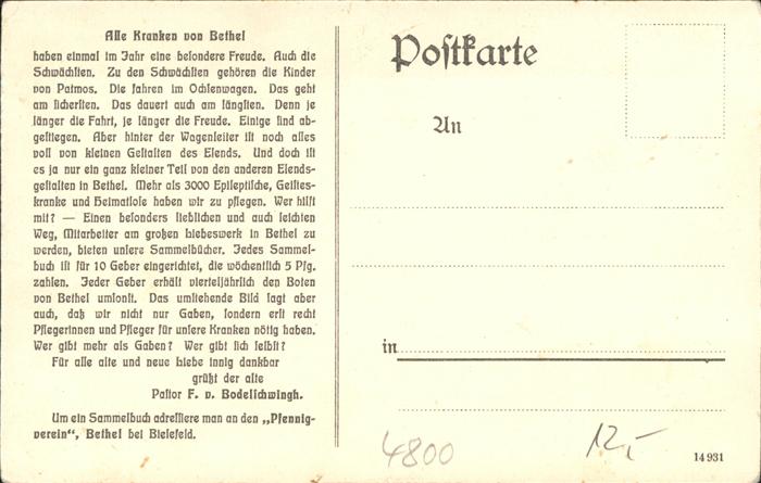 41392095 Bethel Bielefeld Baeuerliches Anwesen Ochsenkarren Kinder Pfennigverein postalisch nicht gelaufen gute Erhaltung KatCode: 11110005711000
