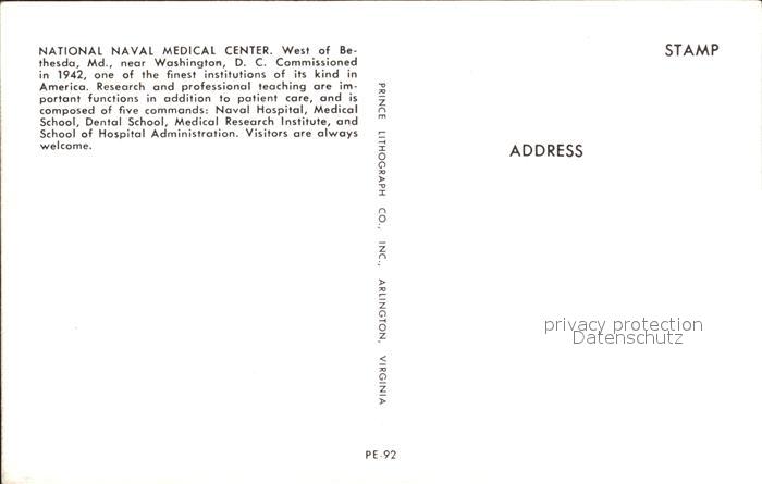 72314042 Bethesda Ohio National Naval Medical Center postalisch nicht gelaufen Erhaltung siehe scans KatCode: 14140370000000