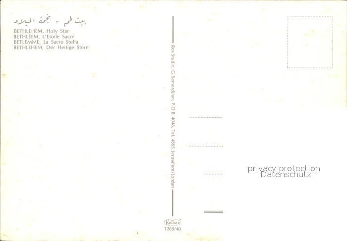 Bethlehem Yerushalayim Holy Star Der Heilige Stern postalisch nicht gelaufen Erhaltung siehe scans