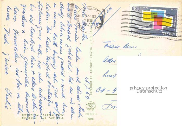 74122007 old postcard Bethlehem Yerushalayim Israel Partial View postalisch gelaufen Erhaltung siehe scans [WerneD78] KatCode: 13080