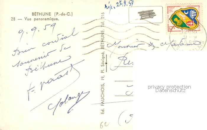13553881 carte postale Bethune Vue panoramique postalisch gelaufen Erhaltung siehe scans [WerneD78] KatCode: 11170062262119
