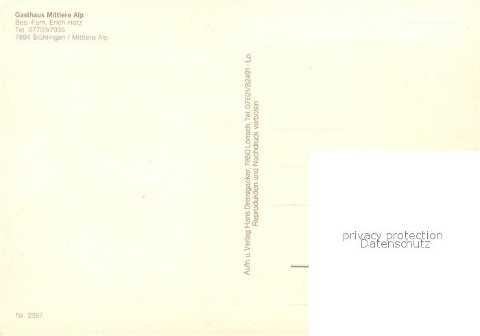 73080924 Bettmaringen Gasthaus Mittlere Alp postalisch nicht gelaufen Erhaltung siehe scans [LiesaD40] KatCode: 11110008337106