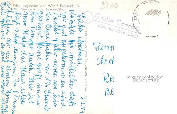 73706211 alte Postkarte Betzdorf Sieg Erholungsheim d. Westf. Frauenhilfe Concordia postalisch gelaufen Erhaltung siehe scans [LiesaD40] KatCode: 11110007132006
