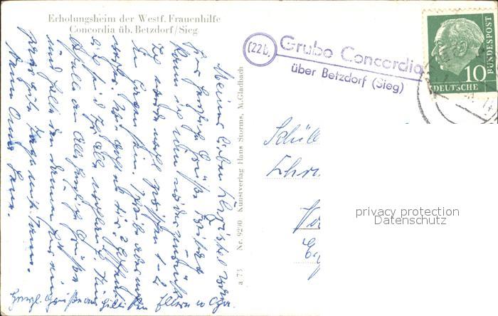 72043271 alte Postkarte Betzdorf Sieg Erholungsheim Frauenhilfe Concordia postalisch gelaufen Erhaltung siehe scans KatCode: 11110007132006