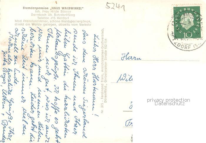 73706802 alte Postkarte Betzdorf Sieg Gesamtansicht und Fremdenpension Haus Waldwinkel postalisch gelaufen Erhaltung siehe scans [LiesaD40] KatCode: 11110007132006