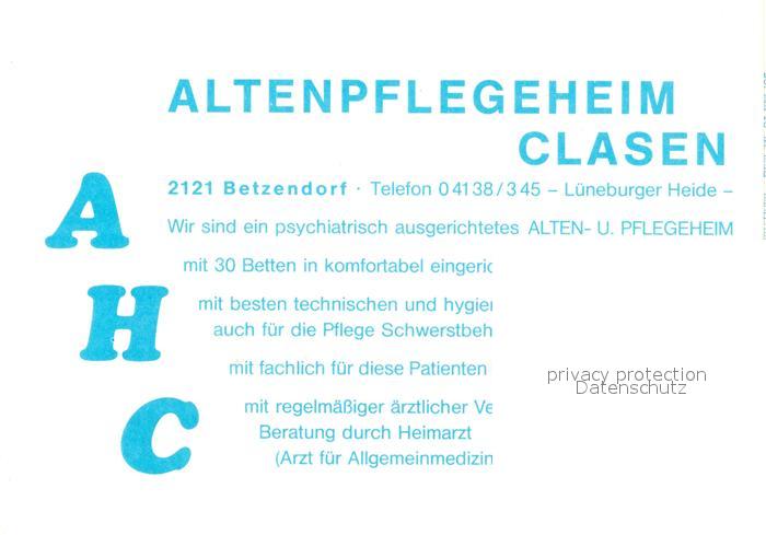 73542913 Betzendorf Lueneburg Altenpflegeheim Clasen Lueneburger Heide postalisch nicht gelaufen Werbekarte (keine Postkarte) Erhaltung siehe scans [FriedD77] KatCode: 11110003355008