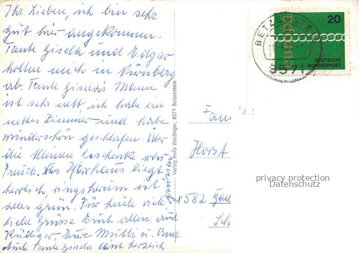 74043075 alte Postkarte Betzenstein Bayern Panorama Kirche Klauskirche postalisch gelaufen Erhaltung siehe scans [WerneD78] KatCode: 11110009472118