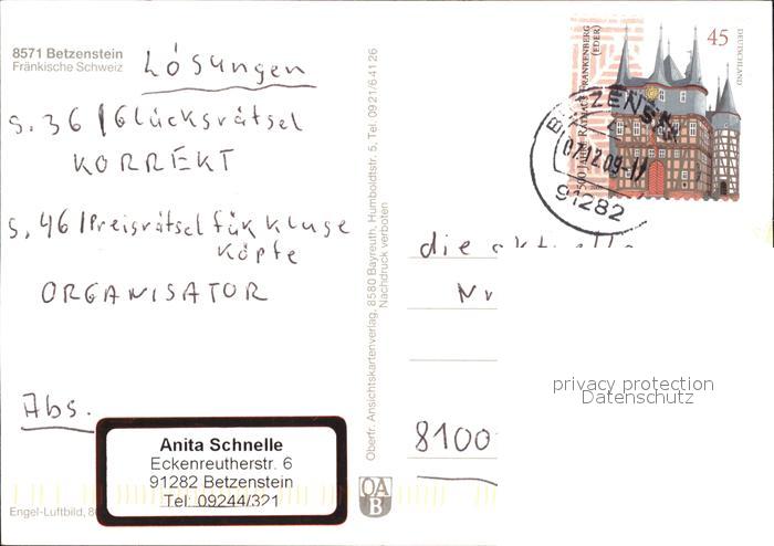 71952381 alte Postkarte Betzenstein Fliegeraufnahme postalisch gelaufen Erhaltung siehe scans KatCode: 11110009472118