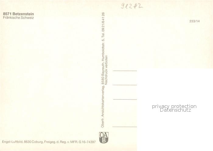 73647249 Betzenstein Fraenkische Schweiz Fliegeraufnahme postalisch nicht gelaufen Erhaltung siehe scans [FriedD77] KatCode: 11110009472118