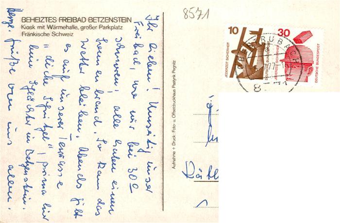 73932338 alte Postkarte Betzenstein Freibad mit Kiosk und Waermehalle postalisch gelaufen Erhaltung siehe scans [WerneD78] KatCode: 11110009472118