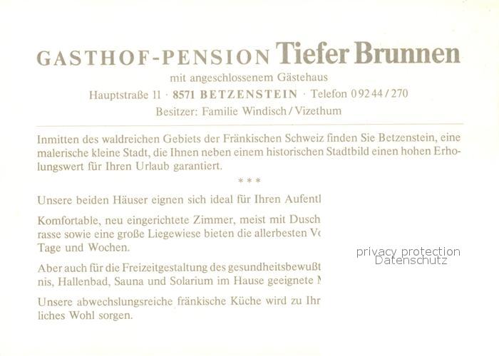 73211753 Betzenstein Landgasthof Tiefer Brunen Gastraum Zimmer Hallenbad postalisch nicht gelaufen Werbekarte (keine Postkarte) Erhaltung siehe scans [WerneD78] KatCode: 11110009472118