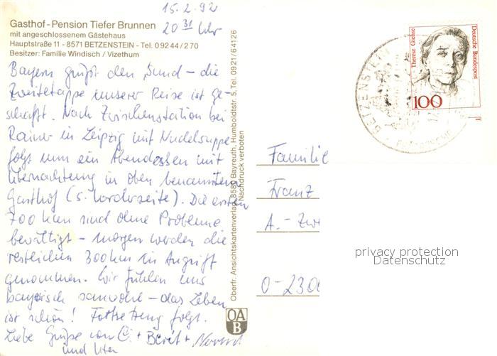 73856773 alte Postkarte Betzenstein Landgasthof Tiefer Brunnen postalisch gelaufen Erhaltung siehe scans [WerneD78] KatCode: 11110009472118