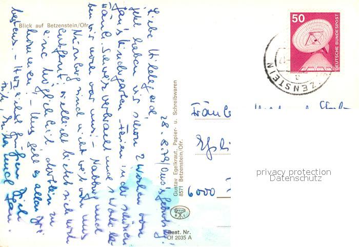 73249944 alte Postkarte Betzenstein Ortsansicht mit Kirche postalisch gelaufen Erhaltung siehe scans [FriedD77] KatCode: 11110009472118