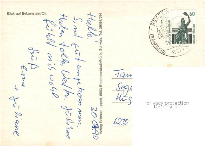 73249950 alte Postkarte Betzenstein Ortsansicht mit Kirche postalisch gelaufen Erhaltung siehe scans [FriedD77] KatCode: 11110009472118