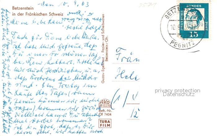 43343479 alte Postkarte Betzenstein Teilansicht Burg postalisch gelaufen Erhaltung siehe scans [WerneD78] KatCode: 11110009472118