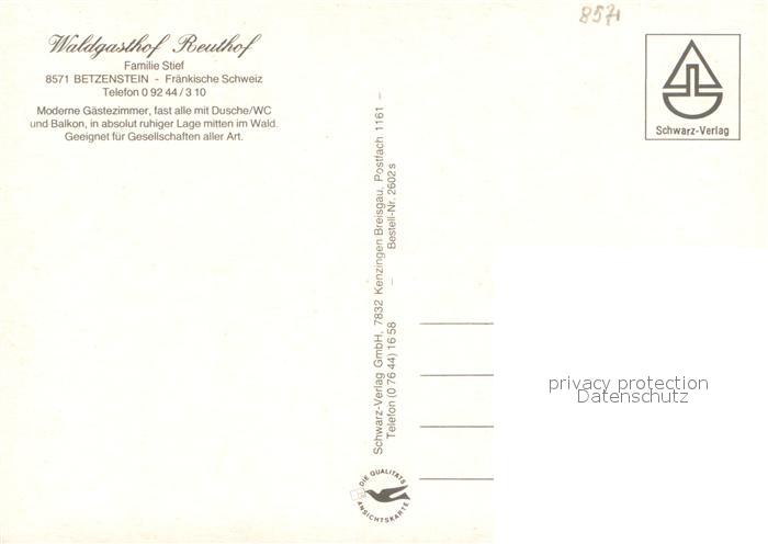73651841 Betzenstein Waldgasthof Reuthof Restaurant Terrasse Fraenkische Schweiz postalisch nicht gelaufen Erhaltung siehe scans [FriedD77] KatCode: 11110009472118