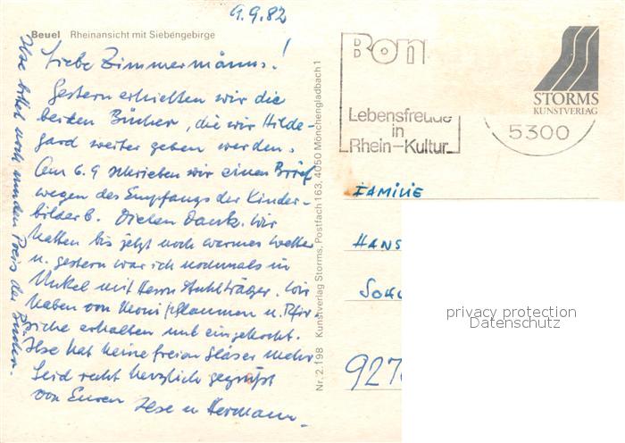 73671742 alte Postkarte Beuel Rheinansicht mit Siebengebirge postalisch gelaufen Erhaltung siehe scans [WerneD78] KatCode: 11110005314000