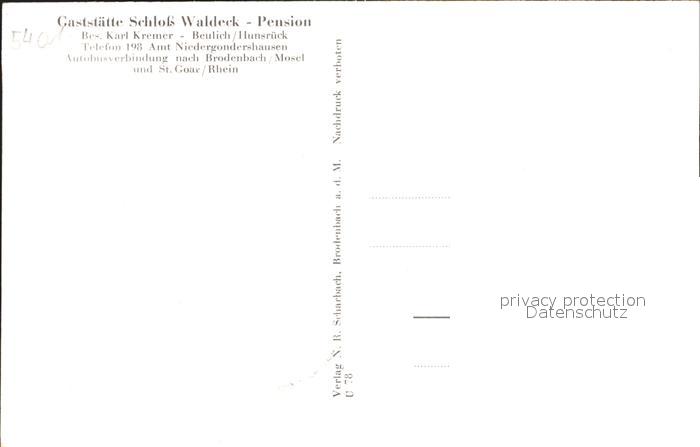 31720513 Beulich Restaurant Schloss Waldeck Pension Schlossruine Waldeck postalisch nicht gelaufen Erhaltung siehe scans KatCode: 11110007140201