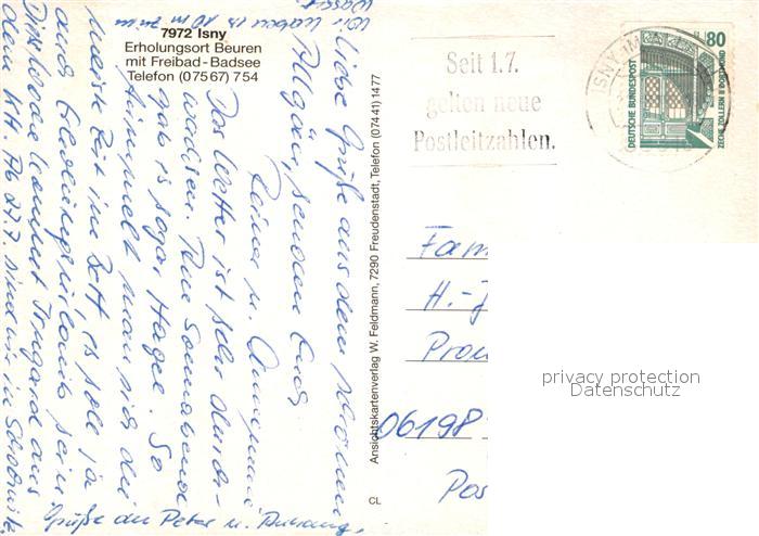 73127297 alte Postkarte Beuren Isny Freibad-Badsee postalisch gelaufen Erhaltung siehe scans [PaolaD17] KatCode: 11110008436049