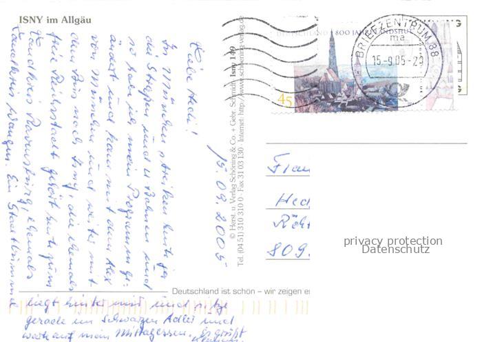 74157692 alte Postkarte Beuren Isny Kirchturm Altstadt Allgaeu Wappen Stadtpanorama Haeuser Waelder Huegel postalisch gelaufen Fliegeraufnahme Erhaltung siehe scans [Karloger] KatCode: 11110008436049
