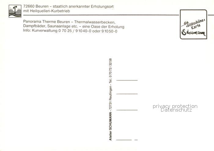 73196760 Beuren Nuertingen Panorama Therme postalisch nicht gelaufen Erhaltung siehe scans [NatalD47] KatCode: 11110008116011